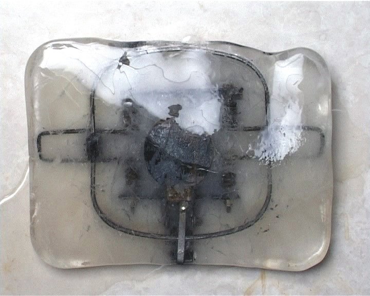 The video project “Frost” allude to the same “slippage of meaning” of “Trappole per gli occhi”. The object is decontextualized, deprived of its functionality, i.e., of the very reason for its being in the world, and in turn neutralizes the gaze of the viewer who embarks on an individual cognitive journey. The artist carries on his personal iconoclastic battle about the loss of identity of the object and the bewilderment of the viewer, disoriented by a conceptual anomaly and the impossibility of decoding the image. Bruno Muzzolini’s is an operation of unmasking or even ”fleshing out” the object, elaborated from the choice of the object-image to its reduction in terms of matter, color (a white and gray monochrome) and every extraneous element in the composition.