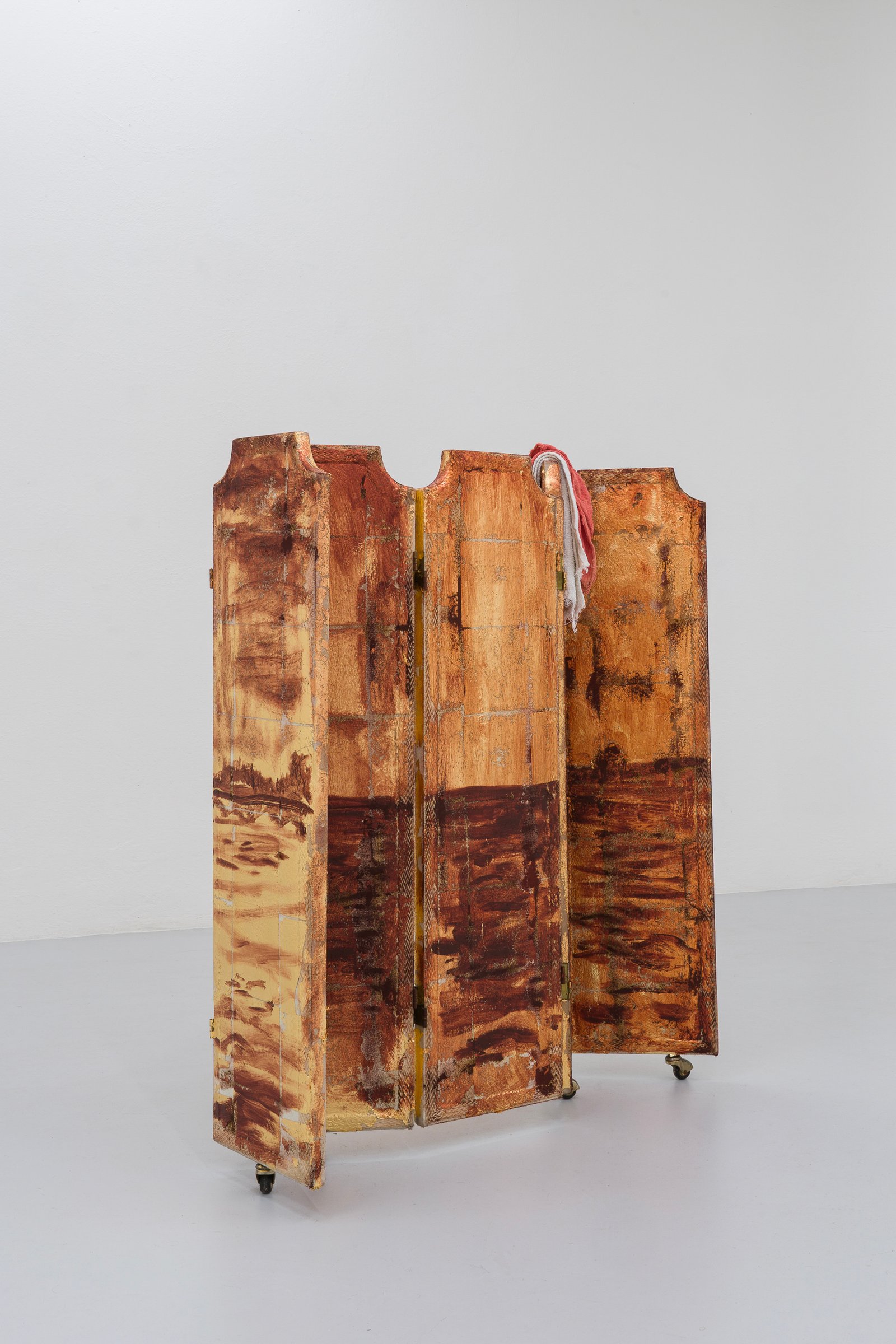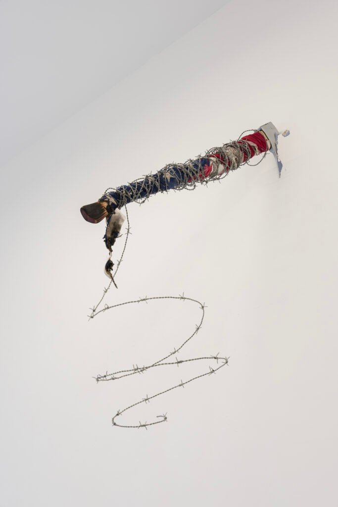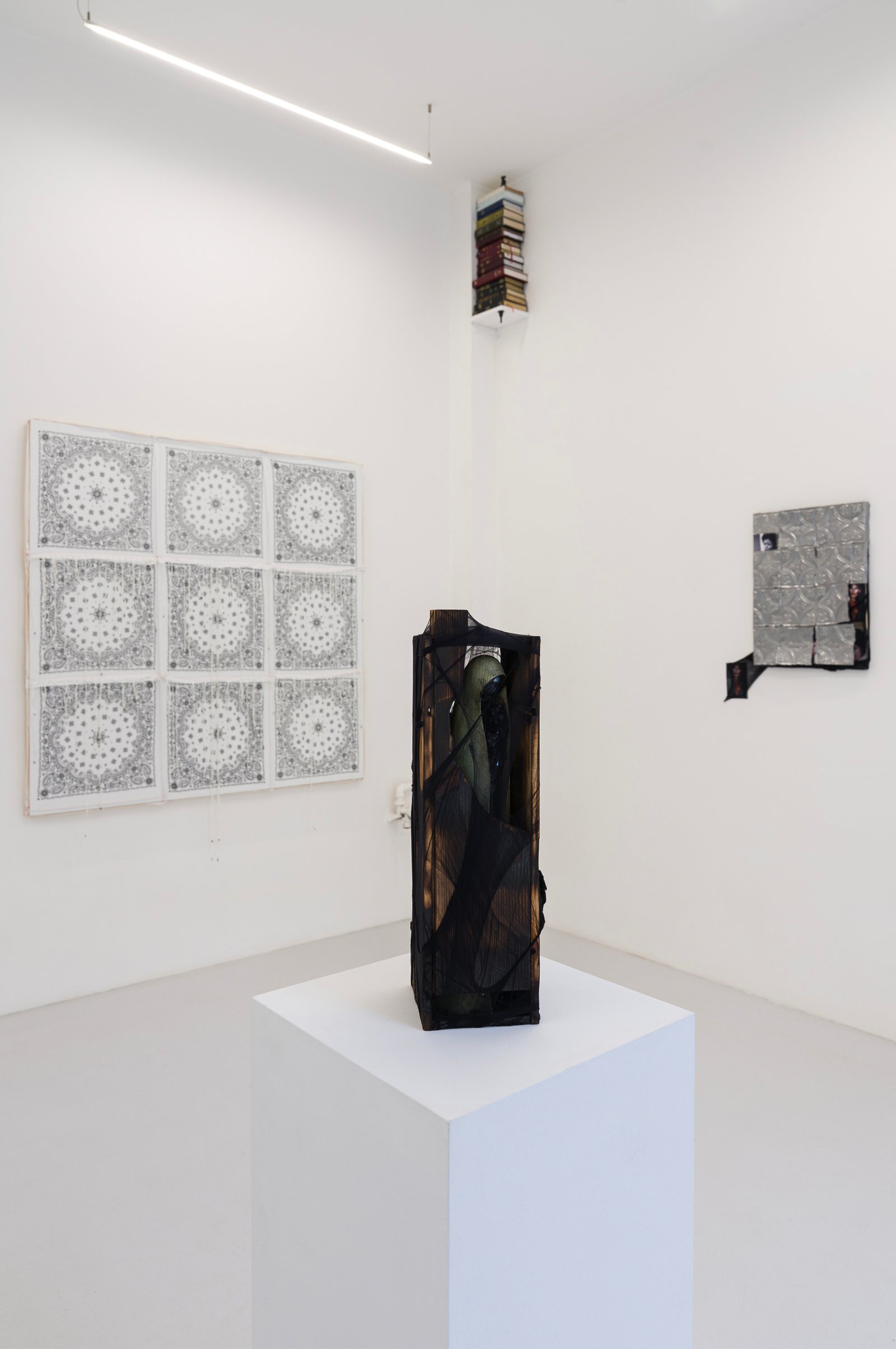 Through textile sculpture, sound, and painting, Thompson continues an investigation into the presumption of permanence. He questions the idea that everything must endure like a monument, both in history and in art, and challenges those cultural habits that, like opera itself, transform violence into aesthetic form. The work reveals how imperial power is presented as beauty and continues to survive through it.