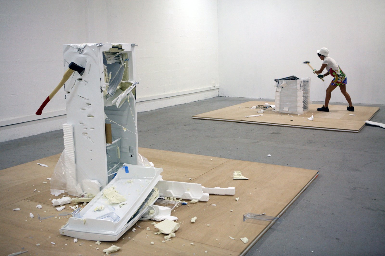Norma’s personal biography is defined solely by their artistic curriculum. Their multidisciplinary work explores our identity—and the evolving relationship between the human, the environment, and technology—through public ritual sacrifices of technological objects, live interactions with viewers, and the creation of icons from typically overlooked subjects ranging from trivial consumer goods to plain scrap.